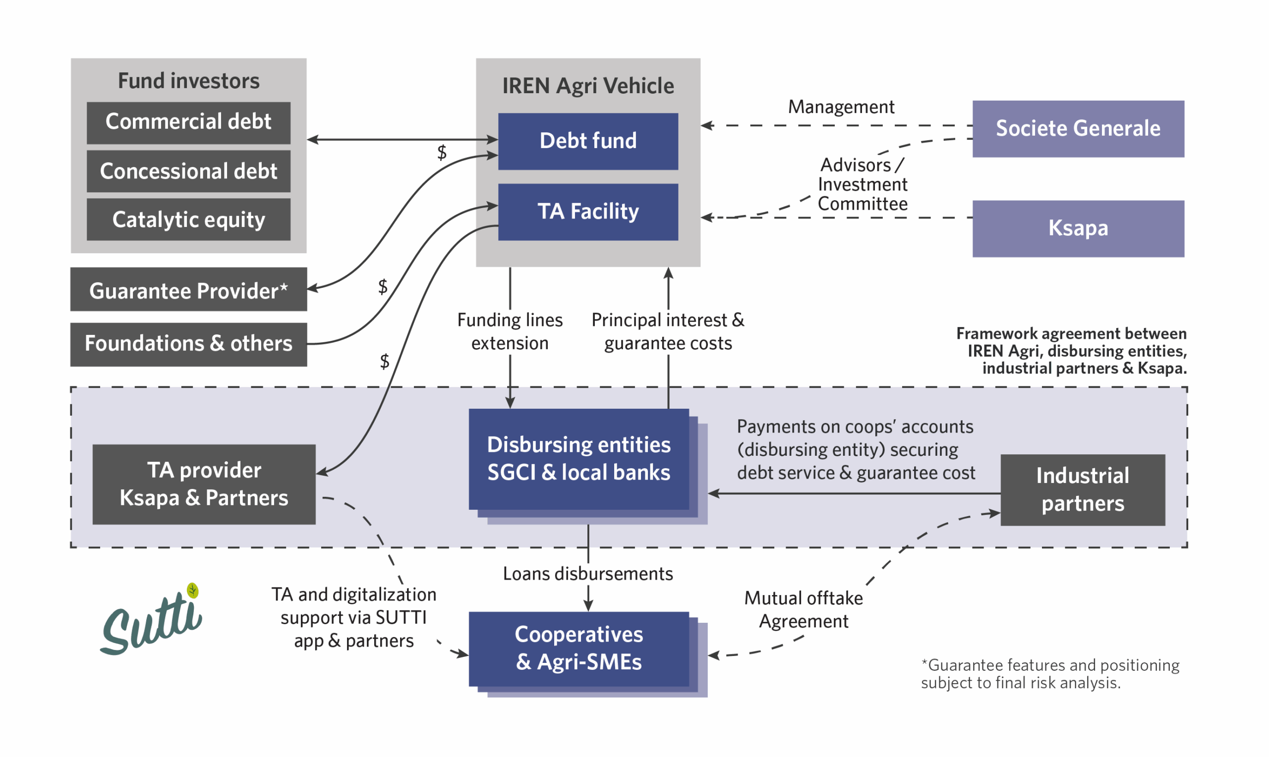 IREN Agri combines three elements rarely found together in agricultural finance: medium-term loans at attractive terms, multi-year offtake agreements, & integrated technical assistance and digitalization support. Financing cooperatives rather than individual farmers strengthens entire value chains and aligns incentives between producers, traders, and banks. The model goes beyond productivity gains to promote climate-smart agricultural practices as well as alternative income streams, improving climate resilience through a holistic, multi-pronged approach. Leveraging the expertise of both proponent organizations, as well as Ksapa’s SUTTI Digital Suite and SG’s local presence, and Societe Generale’s regional networks, IREN Agri offers a scalable solution for African agricultural value chains.